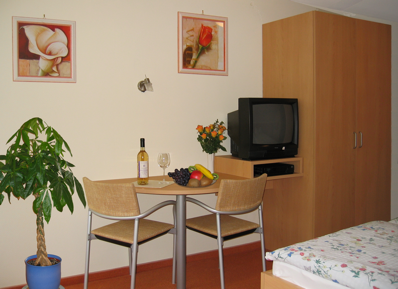 Zur Ausstattung der Zimmer gehören unter anderem Dusche, WC, Farb-TV und Radio. Auf Wunsch können Sie bei Ihrer Buchung nach einem Zimmer mit Balkon fragen. Von dort haben Sie einen herrlichen Ausblick auf die nahe gelegenen Weinberge.
